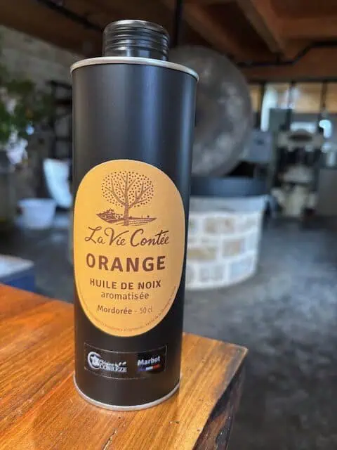 L’huile de noix orange mordorée du moulin de La Vie Contée est parfaite pour l’assaisonnement des salades, mais aussi sur des poissons ou encore des aiguillettes ou du magret de canard, en versant un filet d’huile au moment de servir.